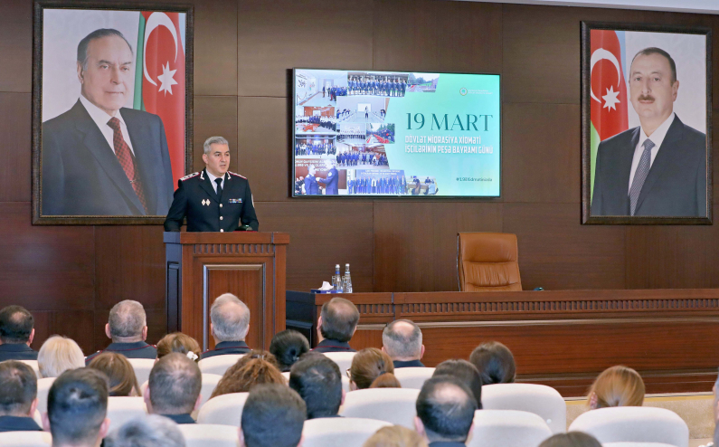 Tədbiri giriş sözü ilə açan Dövlət Miqrasiya Xidmətinin rəisi, II dərəcəli dövlət miqrasiya xidməti müşaviri Vüsal Hüseynov qurumun yaradılmasının 19-cu ildönümü və peşə bayramı günü, eləcə də Novruz və Ramazan bayramları münasibətilə əməkdaşları təbrik edib. Xidmət rəisi Dövlət Miqrasiya Xidmətinin keçdiyi inkişaf yoluna nəzər salaraq son illər ərzində həyata keçirilən fəaliyyətlərdən və tətbiq olunan yeniliklərdən bəhs edib, həmçinin qarşıda duran prioritet hədəflər barədə danışıb.
