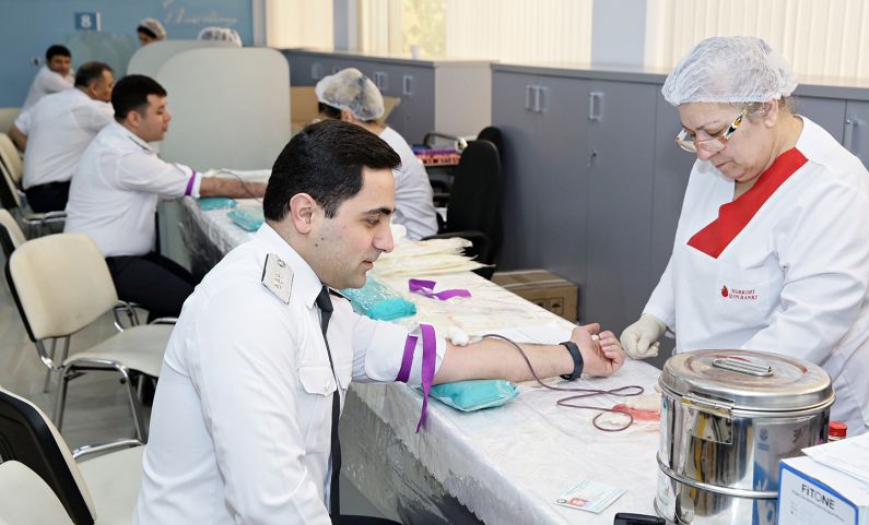 Qeyd edək ki, Bahadur Eyvazov adına Hemotologiya və Transfiziologiya İnstitutunun Mərkəzi Qan Bankının xüsusi tibb briqadasının həkim hemotoloqları donorların sağlamlıq vəziyyətini yoxladıqdan sonra onlardan qan götürüblər.