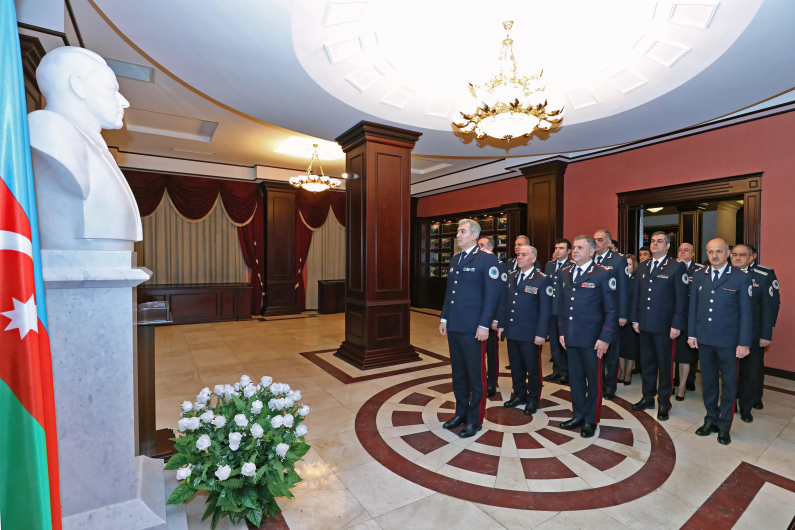 Initially, the Heydar Aliyev Museum located within the headquarters of the State Migration Service was visited. During the event held in the assembly hall of the Service, following the performance of the National Anthem, a moment of silence was observed in honor of the dear memory of National Leader and our heroic martyrs who sacrificed their lives for the territorial integrity of Azerbaijan.